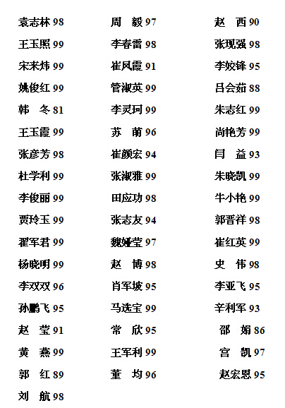 我院参加省级文明单位日常学习知识测评的广大教职工克服困难,积极备考,争取以优异的成绩为学院精神文明建设做出贡献。9月4日下午,在学院组织下举行了首次模拟测评,绝大多数教职工都考出了优异成绩,日前,经学院专业教师批阅,现将成绩予以公布,希望参加测评的同志更加严格要求自己,巩固学习效果,再接再厉。据悉,学院还将举行第二次测评,届时,严格要求,实行单人单桌且成绩继续予以公示。
