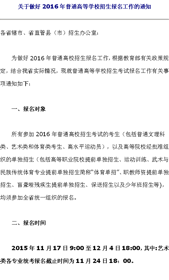 关于做好2016年普通高等学校招生报名工作的通知