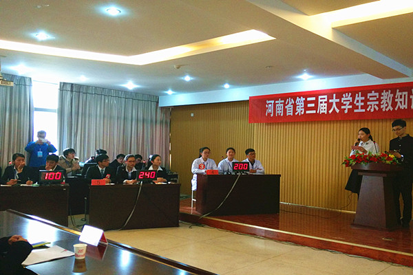 本次比赛由来自豫西片区的河南科技大学、洛阳师范学院、河南城建学院、洛阳职业技术学院、洛阳理工学院、三门峡职业技术学院、河南推拿职业学院、河南质量工程职业学院(按排名顺序)等十一所高校参加。竞赛试题范围为省委高校工委、省教育厅、省委统战部、省宗教局编印的《大学生宗教知识手册》和国家有关法律、法规、政策等。