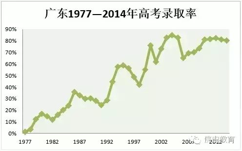 广东高考大数据!!自恢复高考以来,广东每年有多少人参加高考?录取率如何?多少人有机会上大学?请看下图