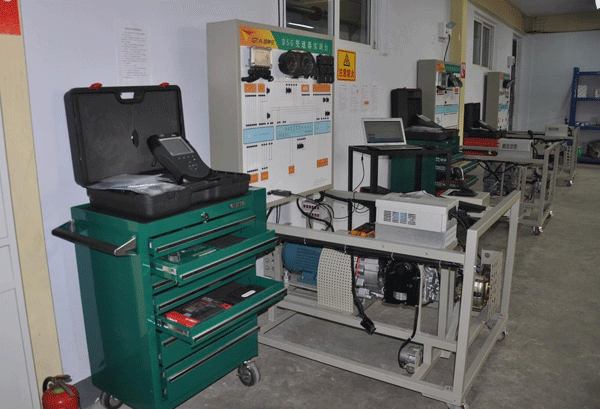 新能源汽车实训中心配置有BMS锂电池管理诊断系统实训台、锂电池检测设备、直流充电桩、电源转换系统实训台、电机结构原理维护实训台、电机检测与故障诊断系统、电机控制器故障诊断系统、混合动力汽车综合实训台及检测仪等设备。基本能满足师生科研和教学需要。