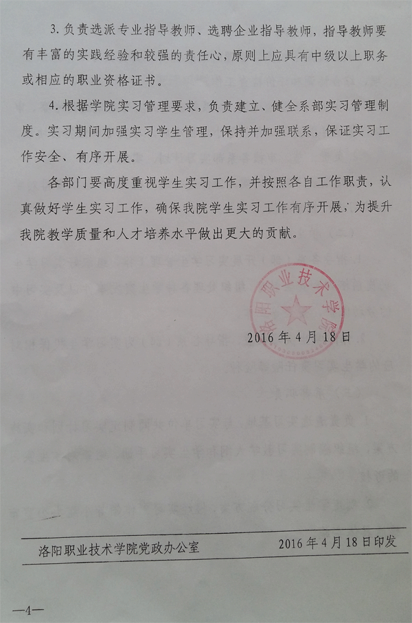 洛阳职业技术学院关于加强学生顶岗实习管理工作的通知