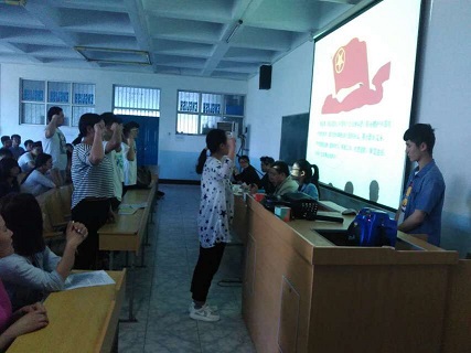 会议主要议程有:(1)发展新团员。由优秀团员带领新团员面向团旗庄严宣誓。(2)表彰2015/2016学年系共青团先进集体和先进个人。(3)新、老团员代表发言。他们的发言表明对今后工作不断完善、积极进取的决心,讲出了全体团员的心声。(4)系党总支书记刘志宇总结开学以来系团总支的工作成绩,对新团员及全系同学提出期望:希望受表彰的团员戒骄戒躁、继续努力;鼓励其他共青团员发奋进取、与时俱进,争做符合新时代要求的有志青年。
