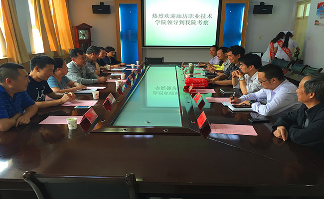 2016年5月23日下午16时廊坊职业技术学院学生处处长王泽泉等一行8人到我院参观学习,学生处处长王少六、学生处副处长,团委副书记、药检系、东方文化创产学院副书记8人参会并进行交流。
