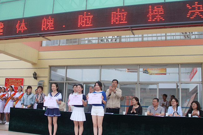 6月2日下午16时,历时一个月的强健体魄啦啦操比赛在机场校区正式落下帷幕。护理学院、药检系、医学系共有18支代表队参赛决赛。洛阳职业技术学院副院长杜跃钢、学生处处长王少六、体育教学部主任牛惠斌、院团委副书记姚俊红及各系领导共10人作为嘉宾评委参加大赛。