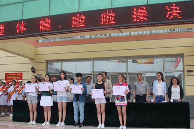 6月2日下午16时,历时一个月的强健体魄啦啦操比赛在机场校区正式落下帷幕。护理学院、药检系、医学系共有18支代表队参赛决赛。洛阳职业技术学院副院长杜跃钢、学生处处长王少六、体育教学部主任牛惠斌、院团委副书记姚俊红及各系领导共10人作为嘉宾评委参加大赛。