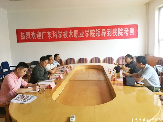 2016年6月12日,广州科学技术职业学院外国语学院原院长张信和、办公室主任杨宏伟一行到我院参观考察。教务处处长张战杰,东方文化创产学院常务副院长王伟浩、党总支副书记李少沛等参加座谈交流。