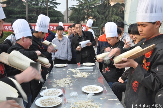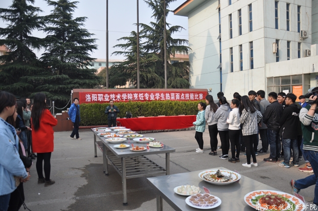 2016年3月21日,由院团委、东方文化创产学院联合举办的“洛阳职业技术学院烹饪专业学生热菜面点技能比赛”在我院高新校区北院隆重举行。创产学院烹饪专业14级、15级共55名选手参加比赛,高新校区各系团总支书记组织本系学生观看比赛。洛阳电视台2016年3月22日在《百姓直通车》栏目以《55名大学生PK厨艺》为题对此做了报道。