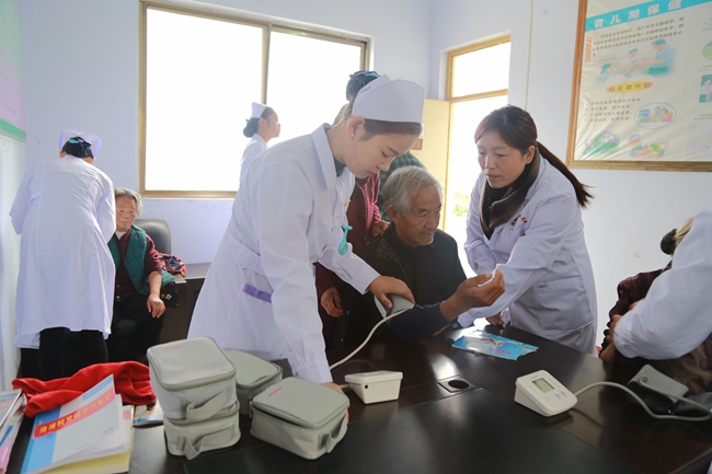10月15日上午,在院党委副书记、常务副院长孙敏的带领下,我院从医学系、药检系、护理学院和附属医院专门选派的老师专家和扶贫结对单位负责人共四十余人,带着心电图机、血糖仪、血压计等检查器具和2000多元的药品、宣传展板、宣传册,深入精准扶贫帮扶村——栾川县栾川乡湾滩村开展扶贫义诊活动。