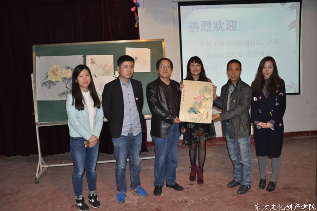 2016年10月20日下午,东方文化创产学院邀请中原王铎书画院副院长、洛阳女子书画院副院长兼秘书长吴惠敏来我院做中国画讲座。东方文化创产学院全体教师、学生,齐聚高新校区北院学术报告厅聆听。科研外事处给予了大力支持。