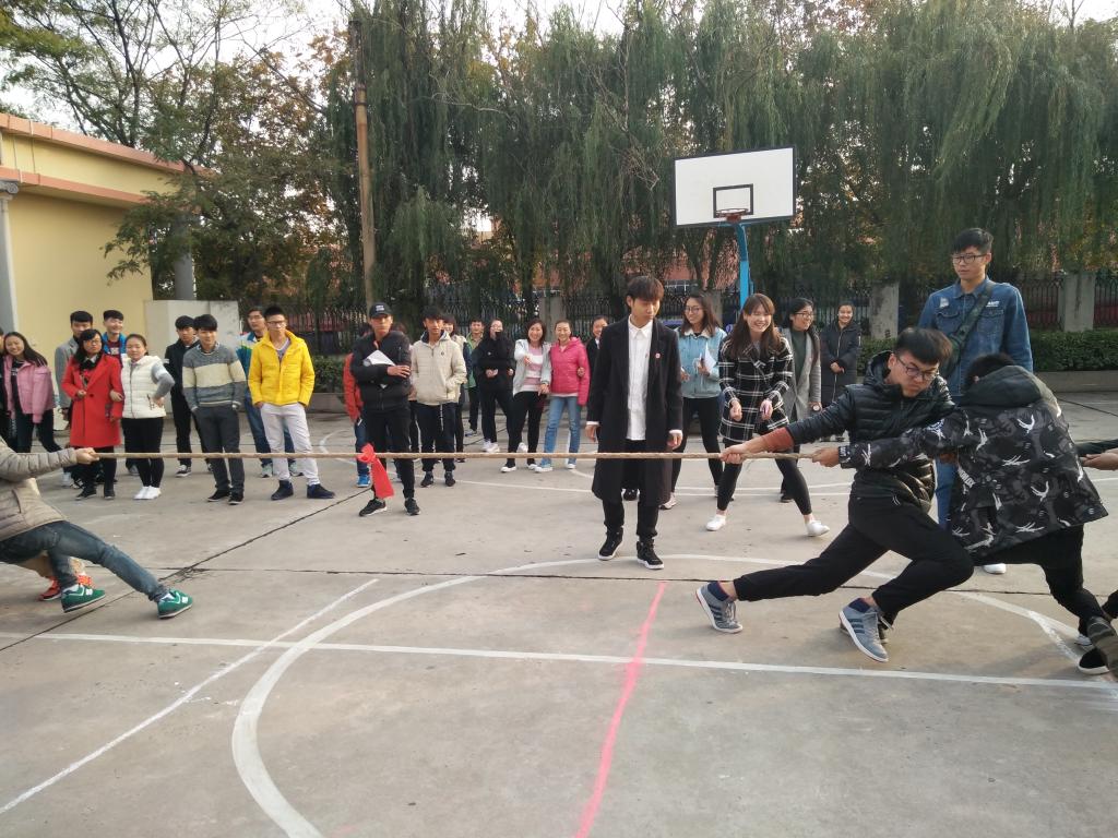 为了倡导精神文明,激发同学们锻炼健康身体的兴趣,增强团体合作精神,展现当代大学生积极向上的精神风貌,丰富校园文化生活,医学系于2016年11月7日在北院篮球场举行了拔河比赛。