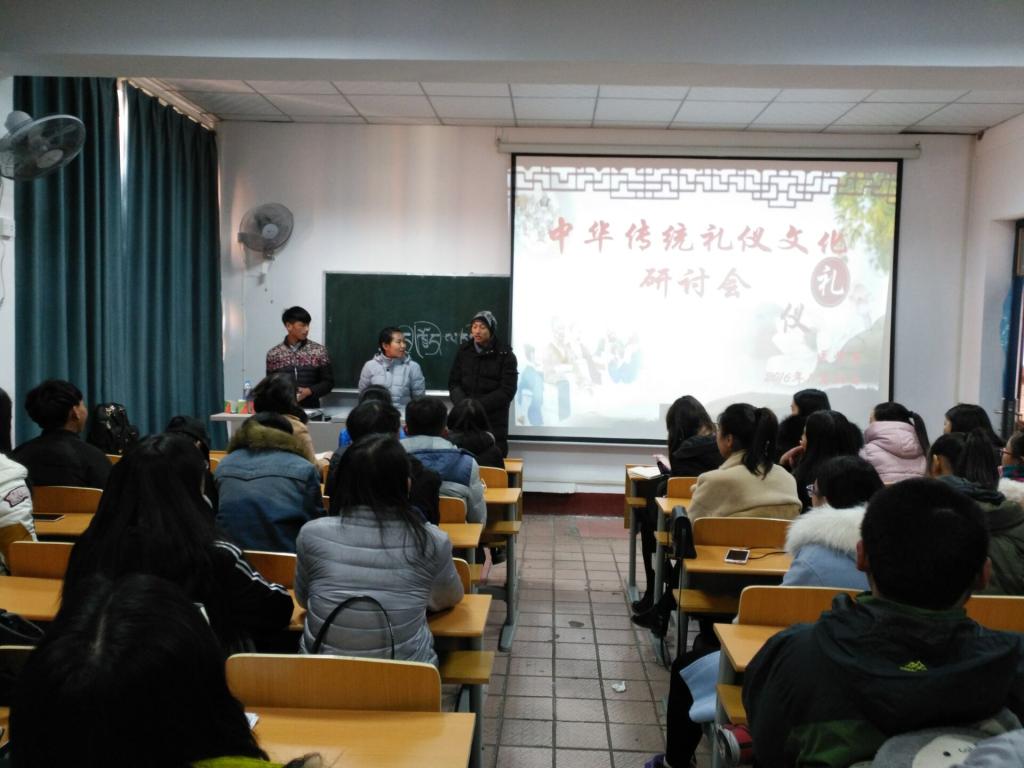 在院团委的指导下,为推动中华传统文化教育,传承中华优秀传统文化。16级医学系于2016年11月24日下午三点在机场路北院第五多媒体召开“中华传统礼仪文化研讨会。”