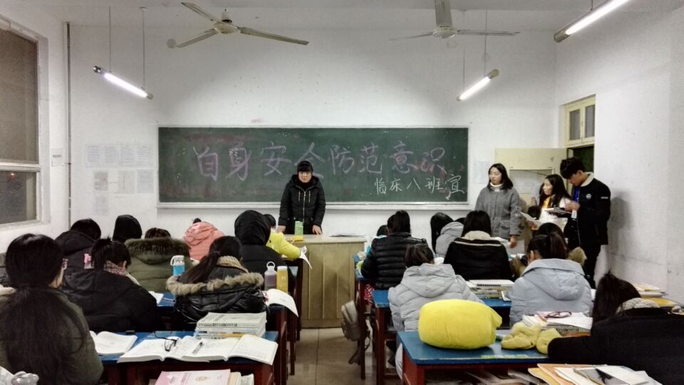 在院团委(学生处)的指导下,为了加强我系大学生的自主防范意识,医学系于2016年12月15日在各班开展了以“提高学生自身安全防范意识”为主题的主题团课与黑板报活动。