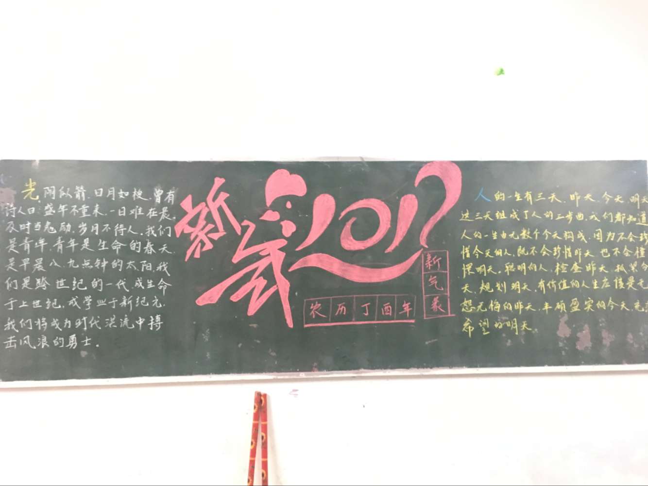 团课期间同学们依据“强建体魄,完善人格,精湛技艺,爱党报国”的校训。各抒己见,分享各自在假期时的所见所闻,也阐述了自己对新学期的学习计划。此次黑板报设计各班同学更是富有创意,展现出对“新年新气象”的诠释。
