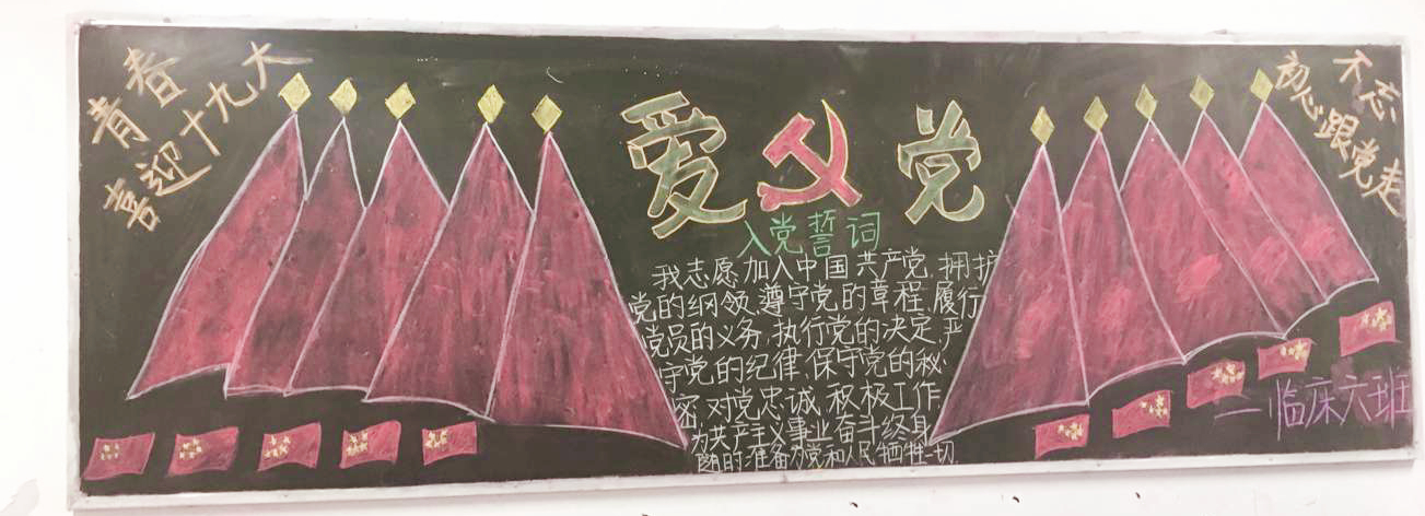 为了引领大学生听党话、跟党走,以奋发向上的精神面貌迎接党的十九大。在院团委指导、系学生会的配合下,我系于2017年4月25日积极开展了“青春喜迎十九大·不忘初心跟党走”的黑板报宣传活动。