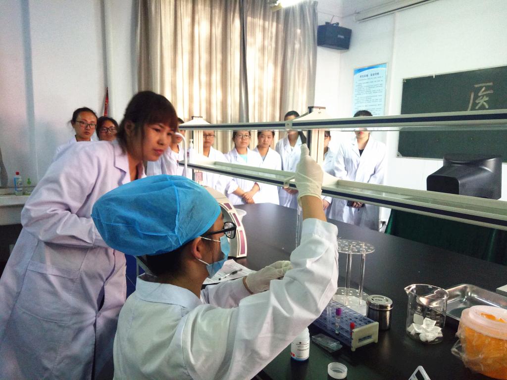 日前,为积极参与“职业教育活动周”,弘扬“劳动光荣、技能宝贵、创造伟大”的时代风尚,追求精益求精的工匠精神,展示技能教学成果,药学与检验系开展了医学检验技能大赛。大赛分白细胞计数、革兰氏染色、血糖测定等比赛项目,经班级预选、初赛、决赛等,大赛圆满结束。