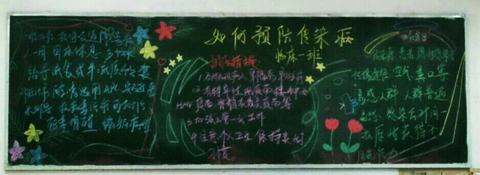 为提供一个健康的学习环境,在院团委指导及系学生会的配合下,我系于2017年5月25日开展了以“防控防疾安全教育”为主题的团课黑板报教育活动。