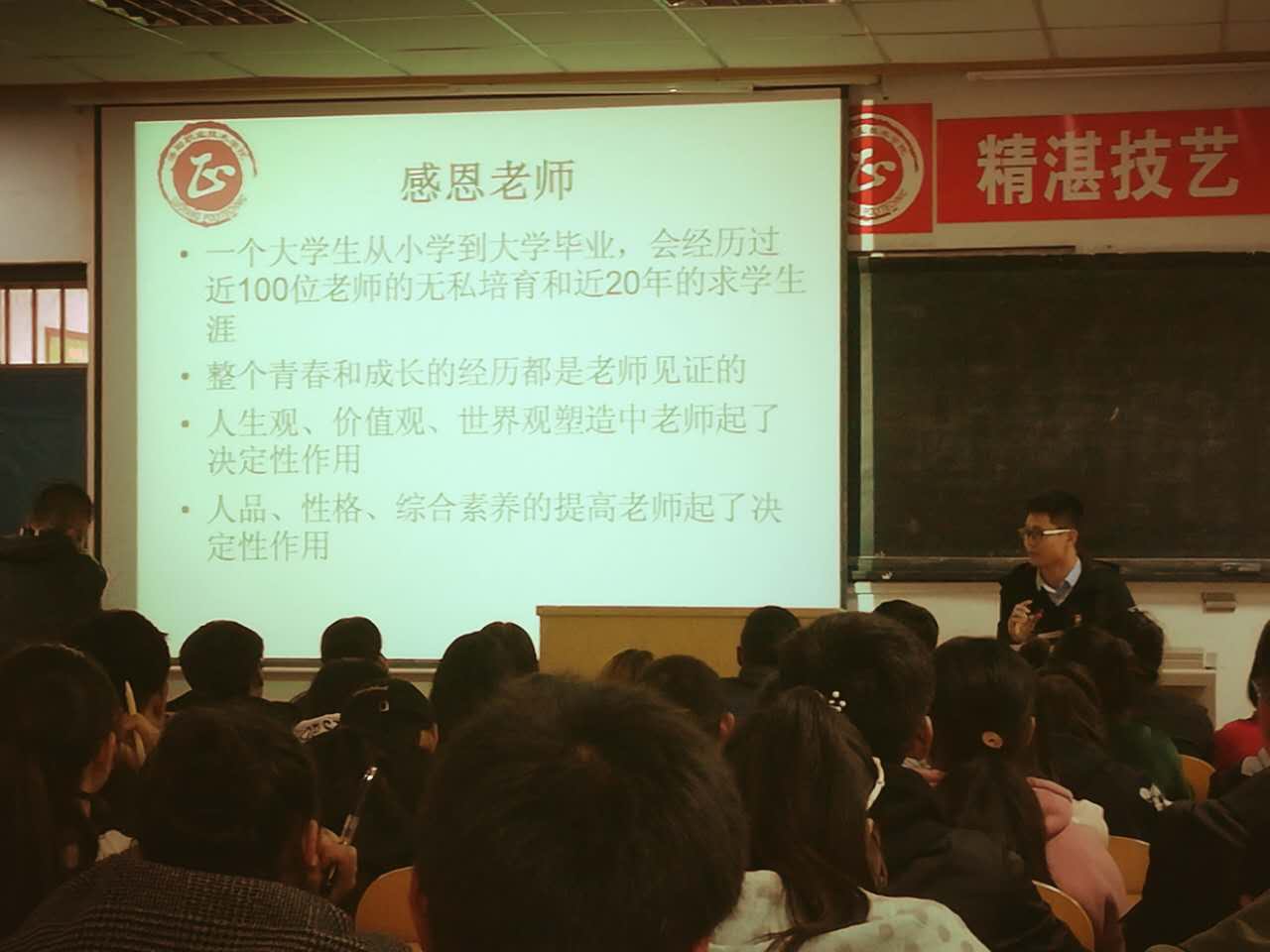 感恩是一种生存智慧,是做人的道德底线,感受和感激他人恩惠的能力的成长,是一个人维护自己的内心安宁感和提高幸福充裕感必不可少的心理能力。在院团委(学生处)的指导下,我系于2017年9月28日在机场校区北院第一多媒体开展了以“道德讲堂·社会公德之感恩篇”为主题的讲座。