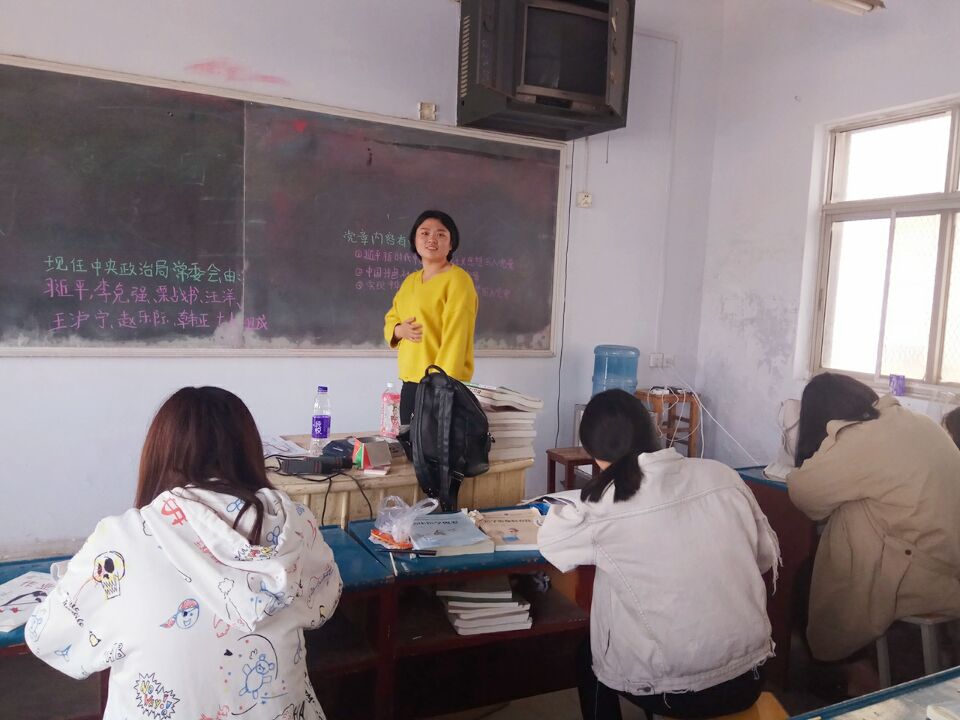 各团支书围绕团课主题,准备有关十九大的幻灯片及相关视频与同学们一起观看,大家知道了党的十九届一中全会选举习近平、李克强、栗战书、汪洋、王沪宁、赵乐际、韩正为中央政治局常委,还知道了党章新增内容分别有是:1、习近平新时代中国特色社会主义思想写入党章;2、中国特色社会主义文化写入党章; 3、实现中华民族伟大复兴的中国梦写入党章; 4、党章根据我国社会主要矛盾的转化作出相应修改 ;5、推进国家治理体系和治理能力现代化写入党章; 6、供给侧结构性改革、“绿水青山就是金山银山”写入党章 ;7、人类命运共同体、“一带一路”写入党章8、全面从严治党、四个意识写入党章 ;9、“实现巡视全覆盖、推进“两学一做”写入党章等。
