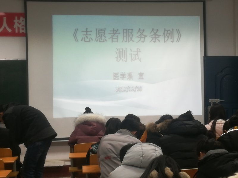 为鼓励和规范志愿服务,发展志愿服务事业,培育和践行社会主义核心价值观,促进社会文明进步。我系于2017年12月10日在机场校区北院组织全体学生进行了《志愿服务条例》网络答题。