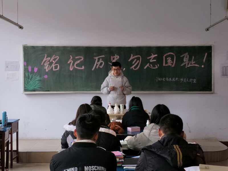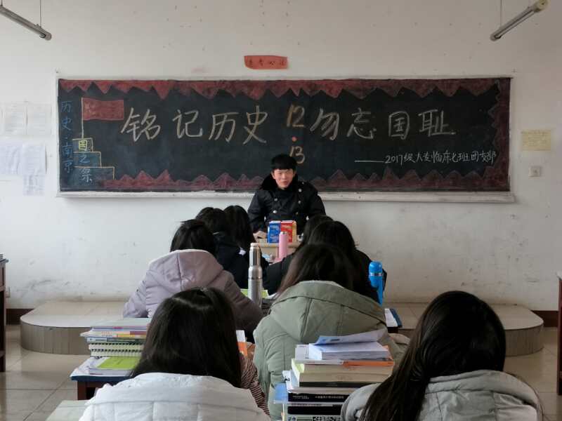 为进一步强化青年学生的爱国主义思想意识,鼓励同学们进一步坚定政治立场,牢记历史,勿忘国耻,树立远大革命理想和崇高人生信念。我系于2017年12月14日,于机场校区北院进行了以“铭记历史,勿忘国耻”为主题的团课。