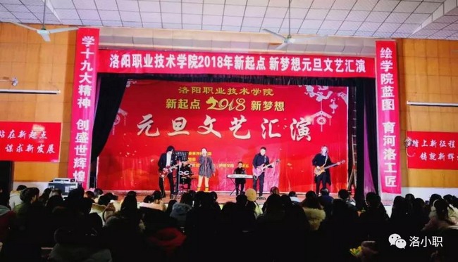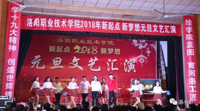 2017年12月28日“新起点,新梦想”元旦文艺汇演在洛阳职业技术学院红山校区隆重举行。汇演由党委宣传统战部主办,院团委承办,洛阳文化技术学院、护理学院、医学系、药检系共同协办。学院领导、教职工与一千余名同学共同观看了这场青春盛宴。党委副书记、常务副院长孙敏同志代表院党委领导班子发表了热情洋溢的新年致辞,并对汇演的圆满成功寄予殷切期望。