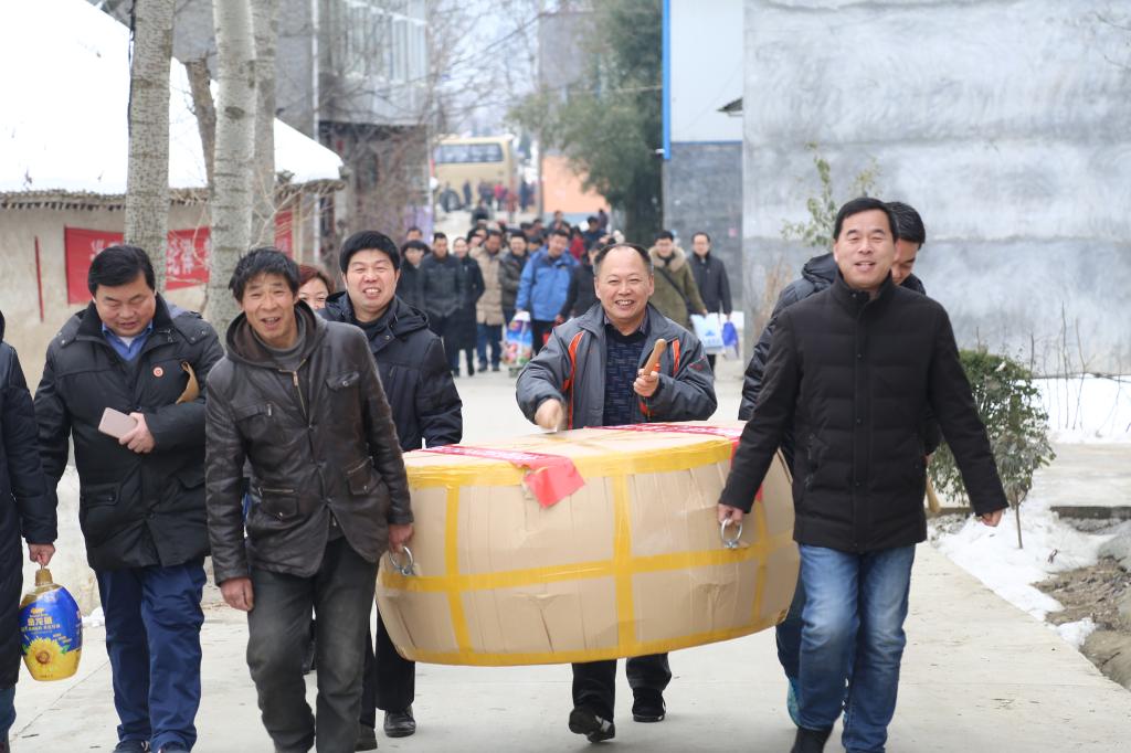 活动现场,热情、感恩的村民敲响了锣鼓,跳起了秧歌,迎接冒着严寒远道而来的领导和老师。孙敏副书记发表了简短的讲话。他说,扶贫要与扶志和扶智相结合,文化扶贫是精准扶贫的一项重要内容,是改变乡亲精神面貌的一项重要举措,对于激励贫困户老百姓奋勇前进有着重要的意义。本次,学院筹措资金购买了价值45000元的锣鼓、服装、龙凤旗、舞台灯光设施、文化活动用品、办公物品等,将进一步活跃老百姓的文化生活,感受党的惠民政策给老百姓带来的福利,使老百姓在通过努力实现脱贫后,更能感受到党的温暖。