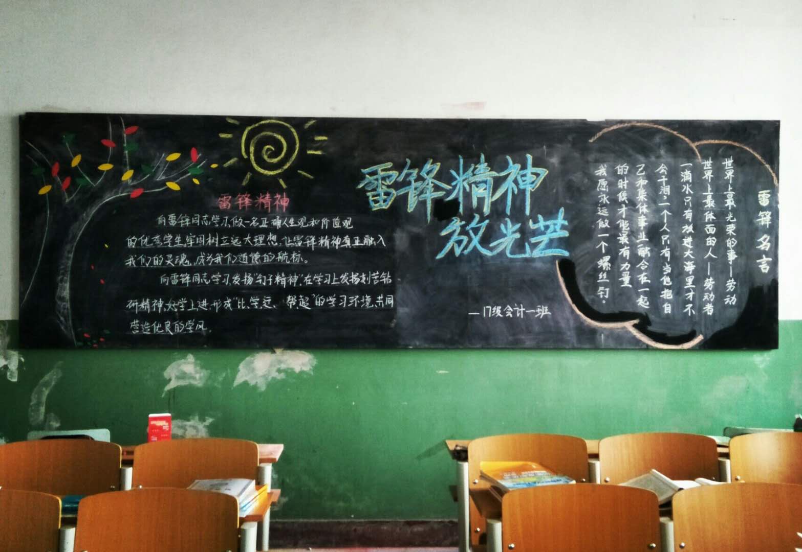 为响应洛阳职业技术学院院团委的号召,经管系积极参与3月“学雷锋,争做新时代好青年“系列活动,于2018年3月6日,组织17级各班学生开展了以”学习雷锋精神“为主题的板报活动。各班学生在辅导员的带领下,积极学习雷锋精神,传播青年志愿者服务理念,制作了丰富多彩的板报。
