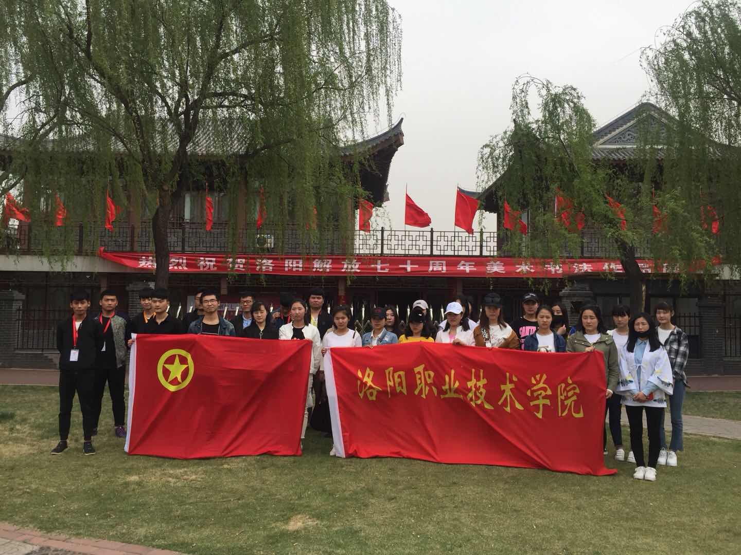 2018年4月3日,我院团委组织高新校区学生干部与东方文化创产学院师生共同前往洛阳牡丹书画院,参观学习“纪念洛阳解放70周年”书画展。