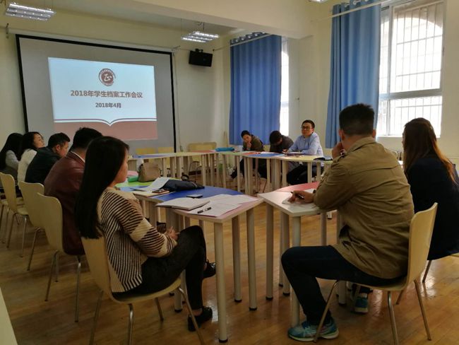 2018年4月24日,学生处召开2018年学生档案工作会议。学生处马选宝、刘洛平,各系(院)学管负责人、档案员参加会议。