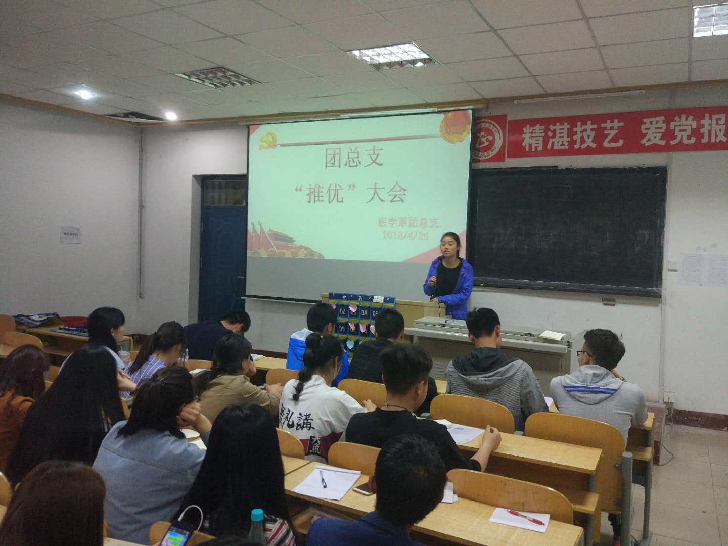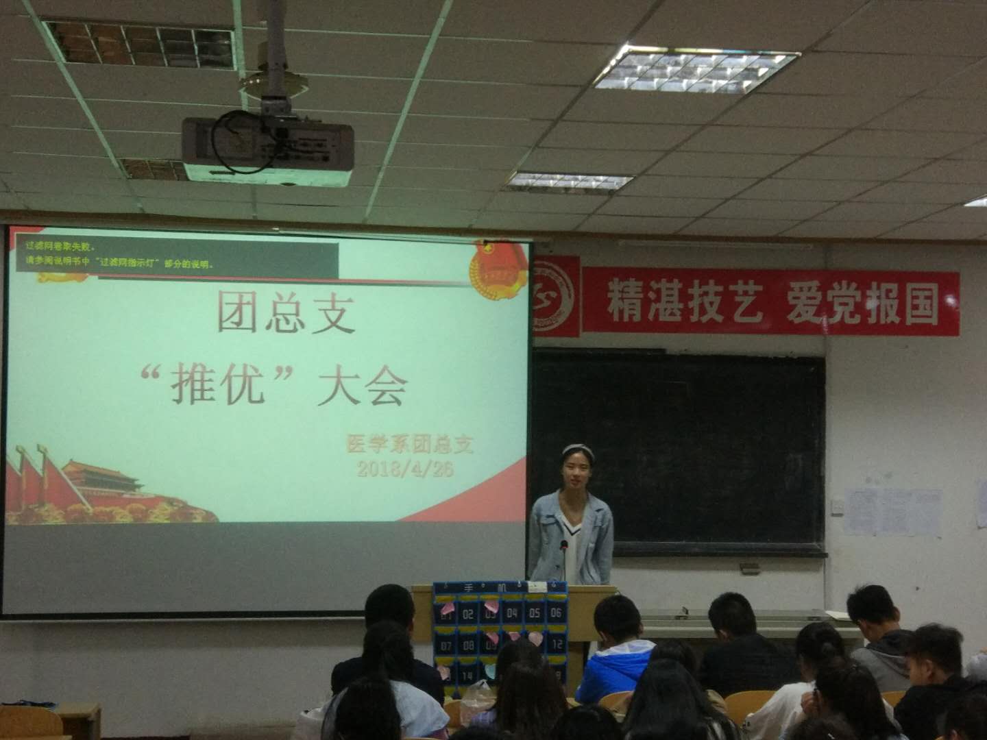 2018年4月26日晚,医学系17级团总支全体成员进行了推优大会,审核通过了各支部推优候选人。此外,结合对班级团支部量化考核内容,向学院推荐了优秀团支部、优秀共青团员、模范团干、优秀团务工作者、优秀学生社团、等名额。