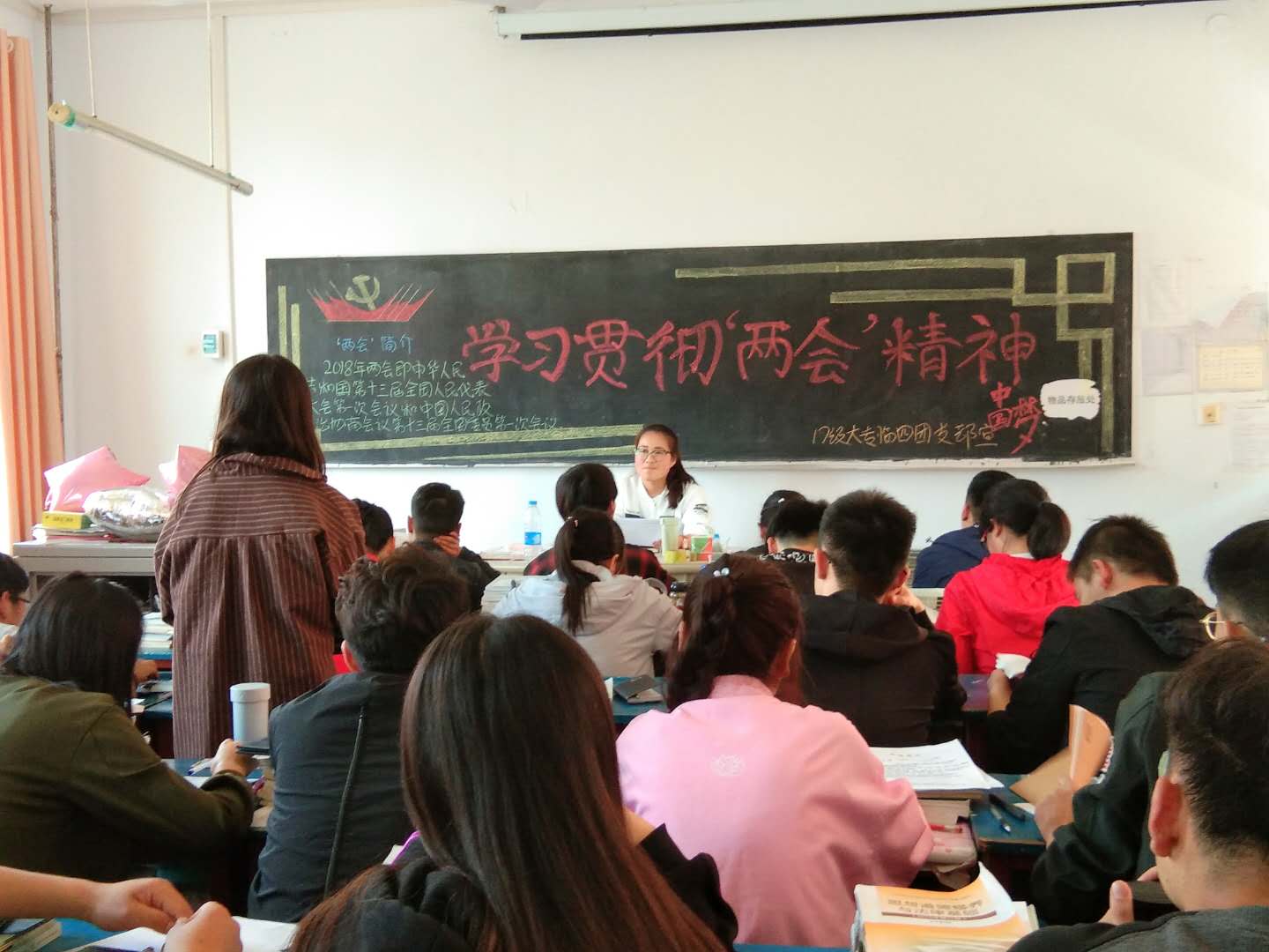 贯彻落实好两会精神,统一思想才能行动一致。为此我系于2018年4月26日,在机场校区北院举行了以“贯彻落实两会精神”为主题的团课教育。