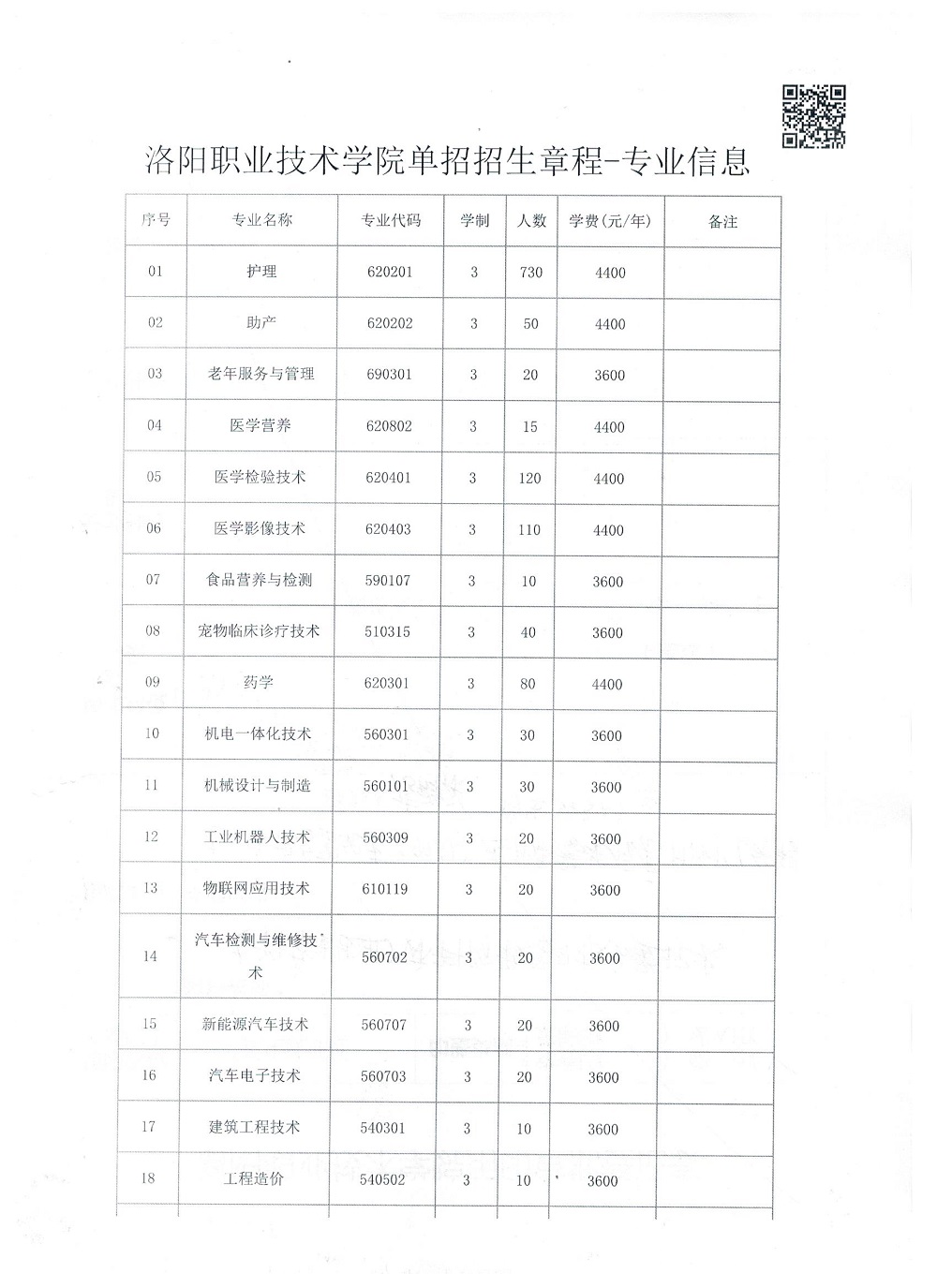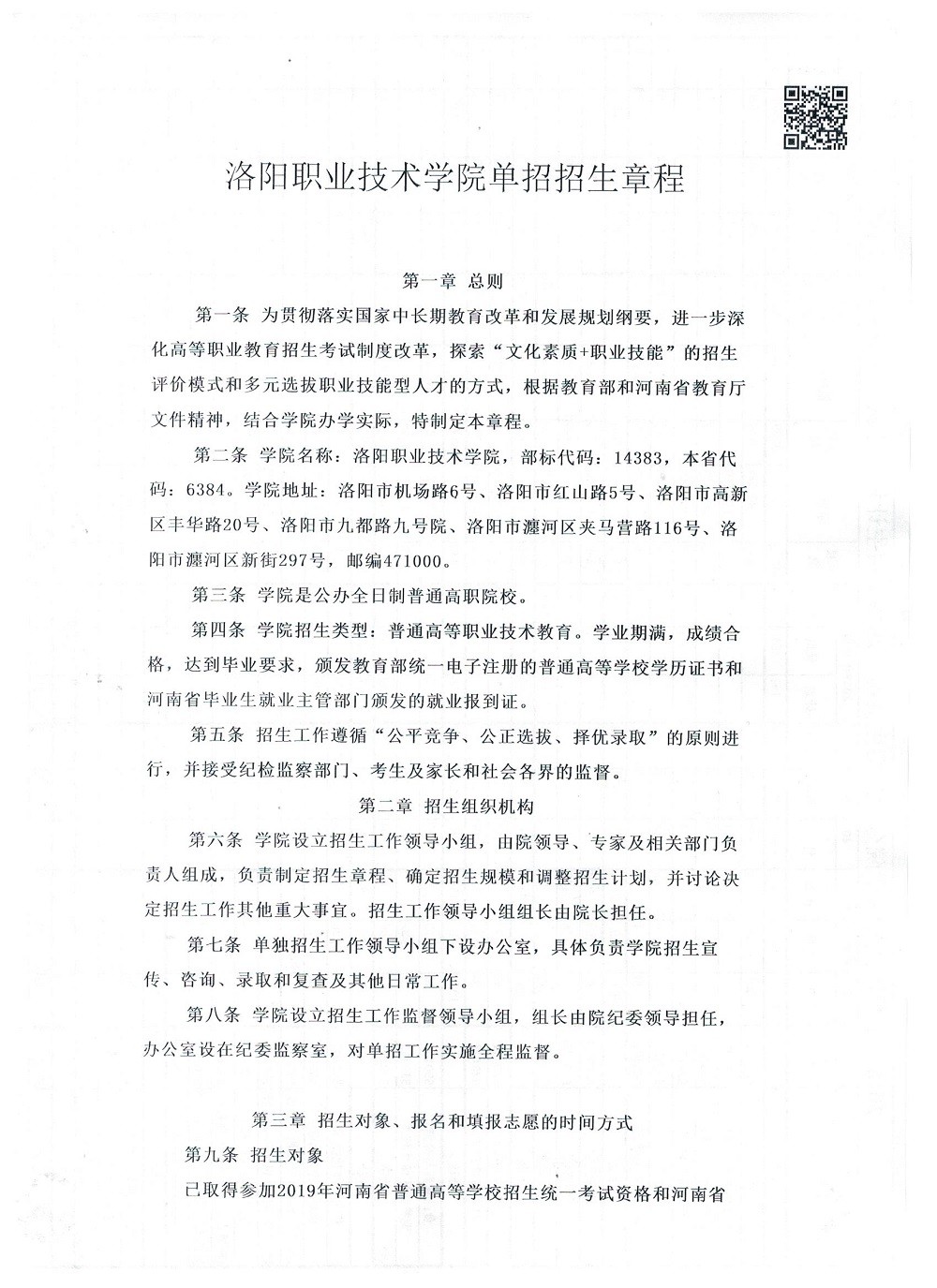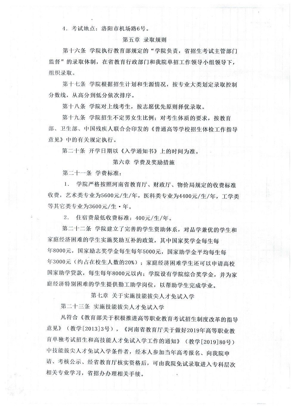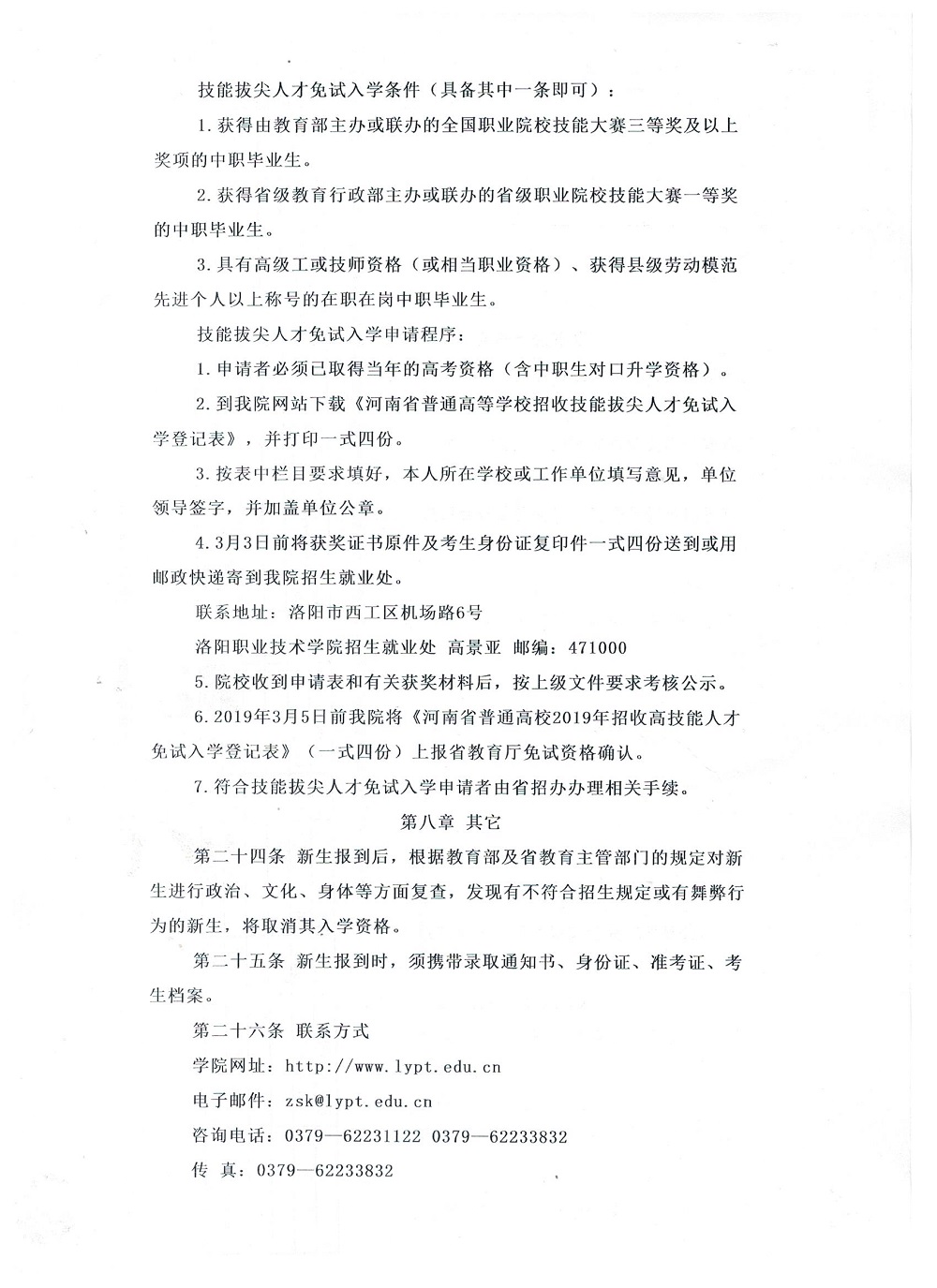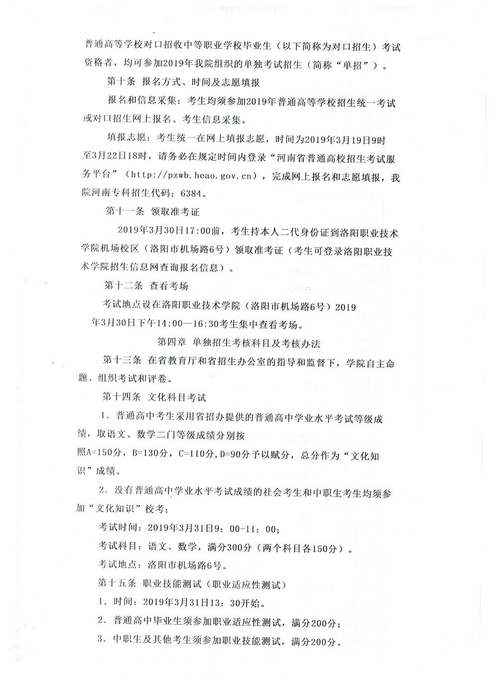 洛阳职业技术学院2019年单招招生章程