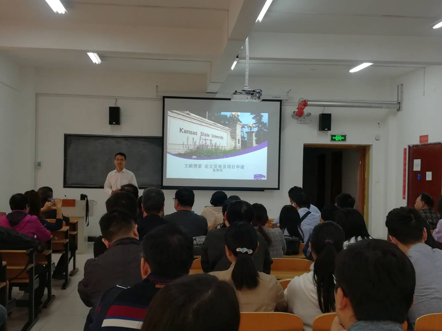 宣讲会上科研外事处处长赵士阳和副处长张贺伟就科研外事工作相关政策、科研外事工作流程、论文及科研项目类别、科研项目申报流程、科研工作的特点等知识进行了宣讲,并在会后同大家进行了交流。