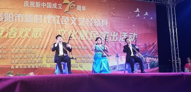 为贯彻落实党的十九大精神,丰富人民群众的精神文化生活,弘扬社会主义核心价值观,传承红色基因。由中共洛阳市委宣传部和洛阳市文化广电和旅游局主办,2019洛阳市新时代红色文艺轻骑兵——河洛欢歌·文化惠民演出洛阳市职业技术学院戏曲艺术学院专场于5月25日晚在周王城广场拉开序幕。