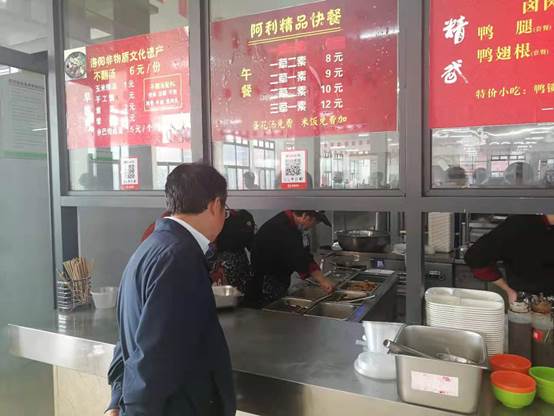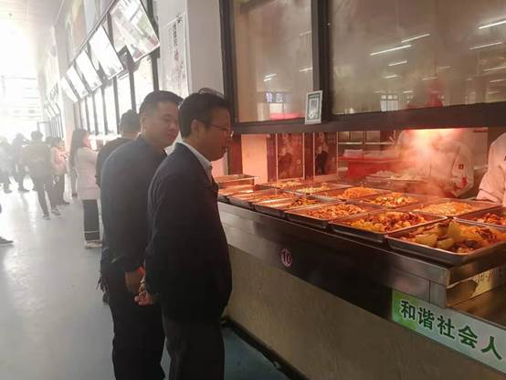 朱书记分别在食堂一、二、三层走访,实地查看饭菜价格,听取餐饮管理人员的相关情况介绍。