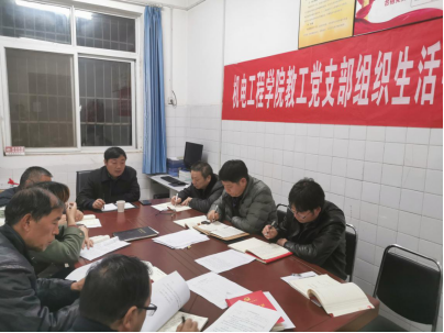 根据学院党委“不忘初心、牢记使命”主题教育的部署要求,12月4日下午,机电工程学院教工党支部在高新校区机电办公楼104办公室召开了专题组织生活会。副院长于幸福作为机电工程学院“不忘初心、牢记使命”主题教育学习联络人,到会指导并发表讲话,机电工程学院教工党支部全体党员参加了会议。会议由支部书记王俊卿主持。