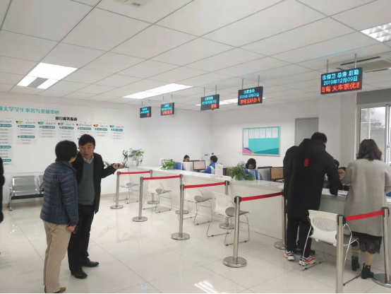 大学生事务与发展中心是苏州市职业大学的一站式学生服务大厅,提供学生事务办理与咨询、学生成长实践与发展指导、学生意见建议汇集与反馈、学生事务信息发布与查询等服务。学生在大厅购买车票、办理学生证、办理离校服务,于院长与学生亲切交流,并认真到服务窗口进行查看。于院长指出,这种服务学生的形式很好,建立一站式服务大厅,通过学生服务学生,既亲切又便于沟通,这些好的做法我们可以借鉴。