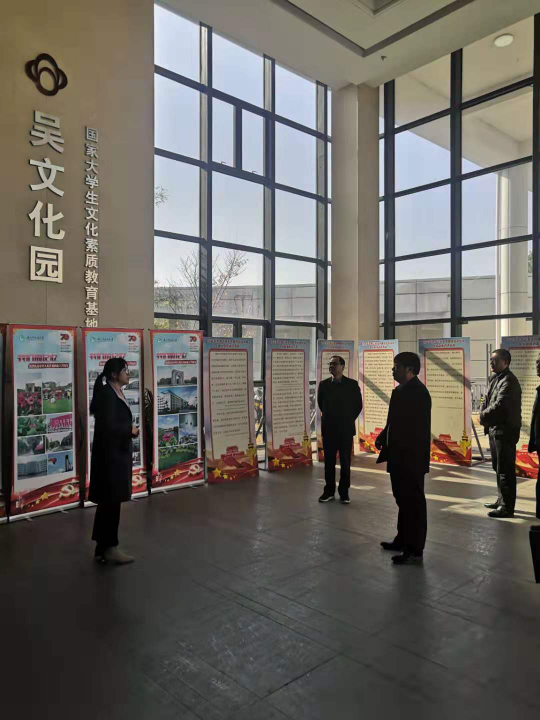 在教育人文学院吴文化园,于院长仔细听取讲解,他指出吴文化博物馆建在高校很好,既提升了学生的文化素养又提升了学校的文化底蕴。洛阳是十三朝古都,文化资源丰富且底蕴深厚,要学习借鉴苏州市职业大学的经验,让汉魏文化在洛阳职业技术学院新校区充分展现,提升学院的文化氛围,增强师生的文化自信,服务好大学生思想政治建设。