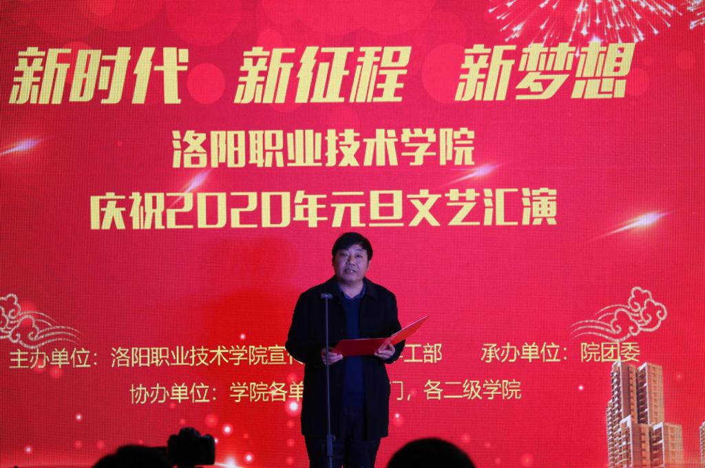 “凯歌高奏辞旧岁,一元复始气象新”,12月29日下午,洛阳职业技术学院“新时代,新征程,新梦想”2020年元旦文艺汇演在伊滨新校区举行。汇演活动由党委宣传部主办,学工部、院团委承办,院党委书记朱美荣、院长程相朝、副院长韩洪涛、副院长于幸福、党委委员朱豫豪、党委副书记胡珊出席本次活动。各部门、各单位负责人,各二级学院院长、书记,以及在校部分师生参加此次活动。师生们欢聚一堂,共享视听盛宴。