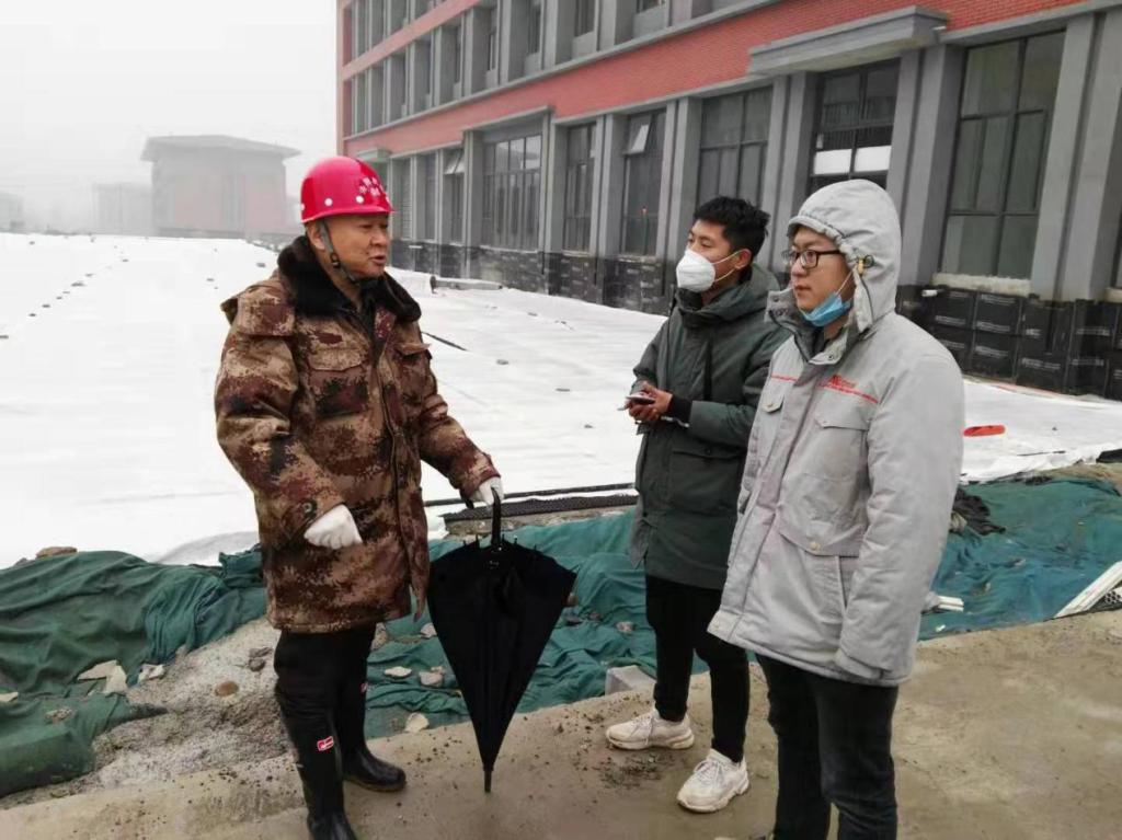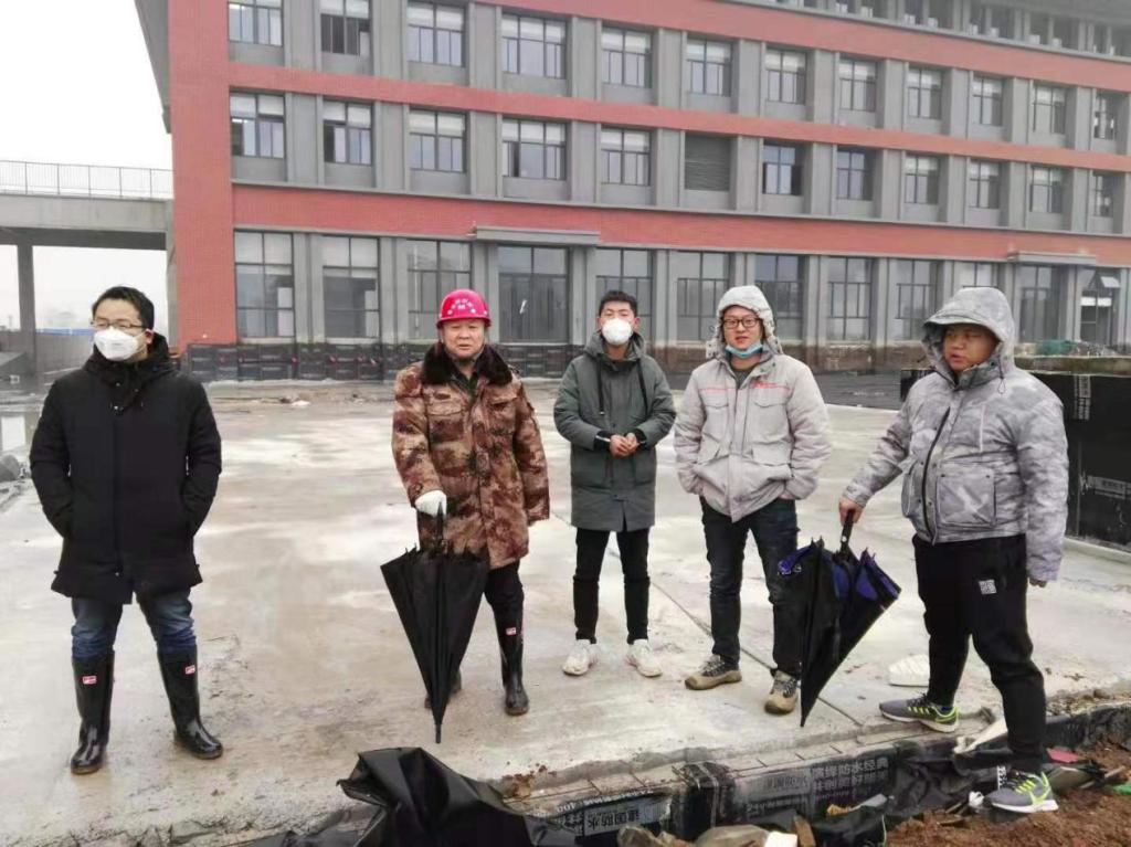1月26日,农历正月初二,学院党委委员、新校区建设指挥部常务副指挥长朱豫豪冒着小雨到新校区建设工地检查施工情况。