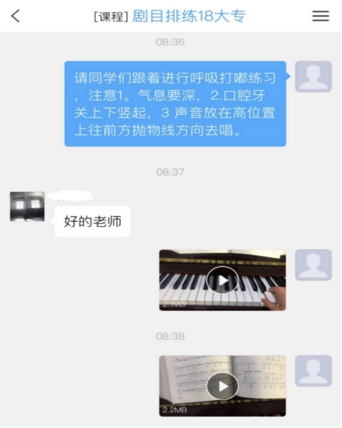 老师们通过传送微课视频,讲授训练方法、要领,布置作业等方式帮助同学们展开学习。同学们自觉在家完成并通过录制视频向老师们汇报。看到视频中的同学们在自家的院子里、田间地头、客厅等处踢腿、下腰、耍枪花,让人不禁想起了那句“台上一分钟、台下十年功”的艺谚。为那些勤奋自觉的同学们点赞!