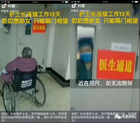 沈婷婷坚守隔离病房15天,同在这家医院住院的奶奶想见孙女,也只能隔门相望。