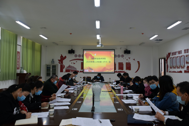 会上,刘彦龙同志传达学习了市纪委书记李保国同志在十一届市纪委常委会第165次(扩大)会上的讲话精神;王少六同志通报了疫情防控期间纪检监察工作;纪委委员对《2020年纪检监察工作要点》《中共洛阳职业技术学院纪委履行全面从严治党监督责任清单》《班子成员廉政承诺书》和《领导干部廉政承诺书》等四个文件进行了审议。