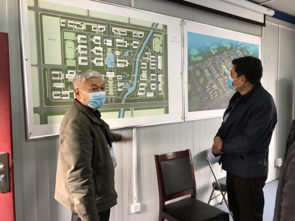 王向军、苗江利一行参观了我院新校区建设情况,对新校区建设速度和取得的成果表示赞赏。在随后的座谈会上,党委委员、新校区建设指挥部常务副指挥长朱豫豪介绍了我院新校区项目规划、建设及目前进展。双方还就规划审批、建设资金等问题进行探讨交流。