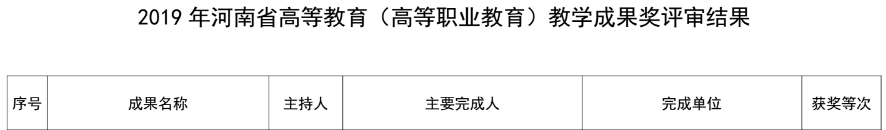 4月22日,河南省教育厅网站对2019年河南省高等教育教学成果奖进行了公示。我校两项课题入选。