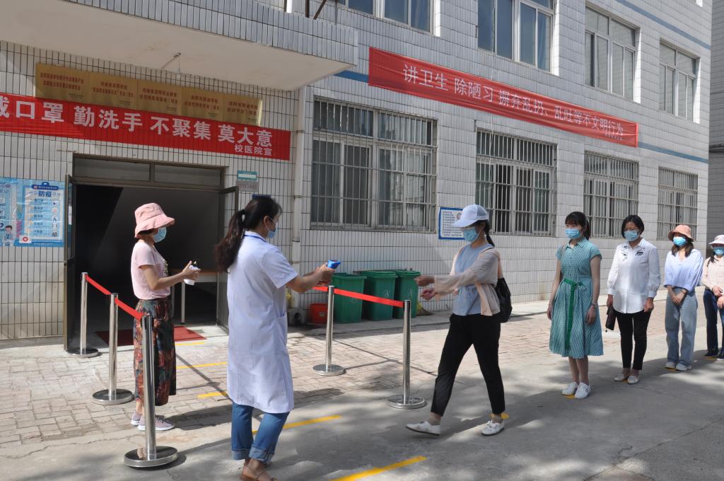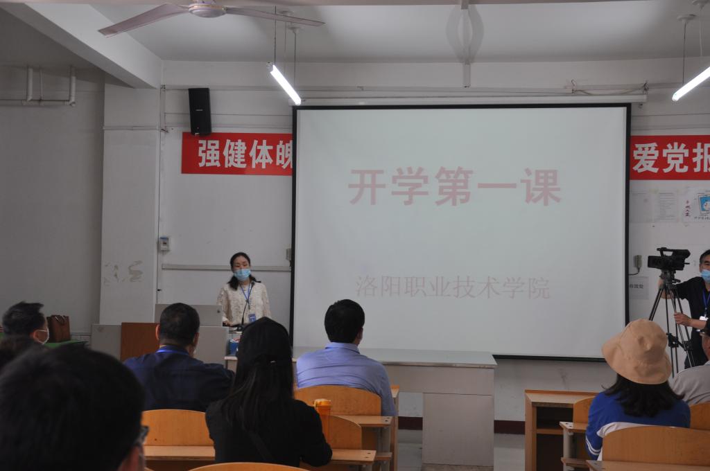 第三站:进教室演练。教师和“学生”在测量体温后,依次进入护理实训楼教室,共上“开学第一课”。