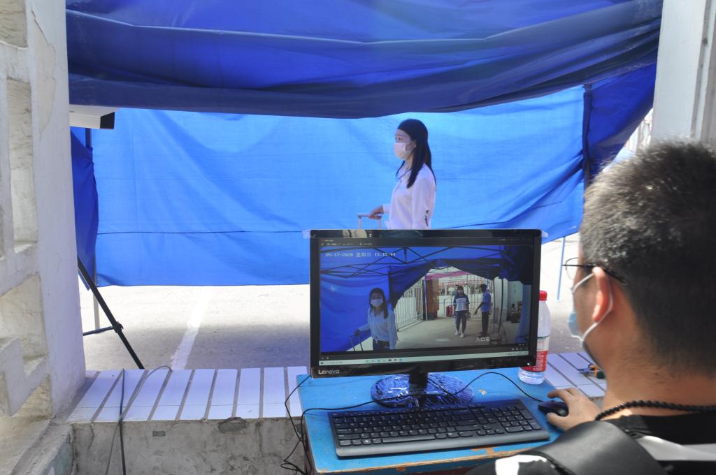 第一站:进校门演练。在入校报到现场,“学生”按照依序进行了体温初测、人员行李消毒、核验健康码、二次体温监测和人脸识入校等环节进入校门。期间,还安排了发热学生出现启动应急程序环节模拟演练。