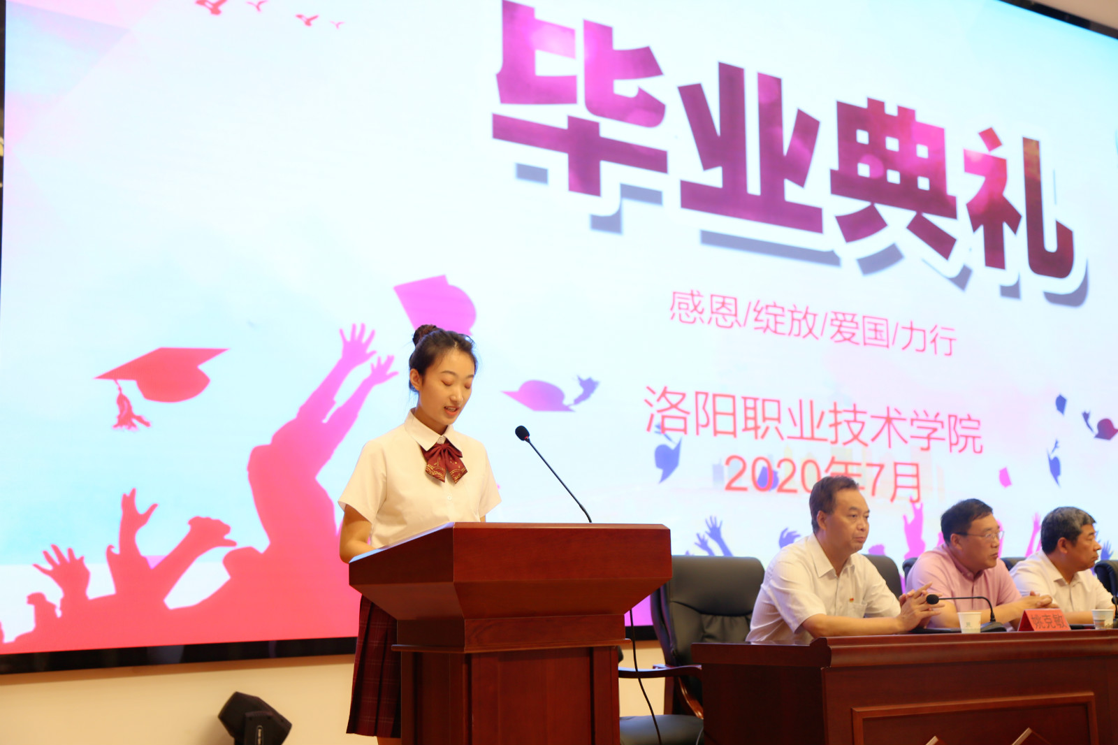 程相朝向2020届毕业生表示祝贺,向悉心培育和关心关爱毕业生成长成才的老师们表示感谢,对即将奔赴各行各业的毕业生们提出三点希望:一是希望大家永远不要放弃对美好人生的奋斗与追求,不断在实践中淬炼过硬本领,在新时代成就一番事业。二是希望大家永远保持对自己,对生活的自信。今后工作与生活中不管遇到什么样的挫折与困难,都能够昂首挺胸,自信满满向前走。三是希望大家知变谋变、勇于创新。在变化与创新的时代,站高望远,准确把握形势,发现机遇,知变应变谋变善变;坚持“向科学要答案、要方法”,加强学习、提升本领,发扬洛职“学以致用,行以致远”校训,强化创新思维,参与创新实践,以自己的专业所学回馈社会。