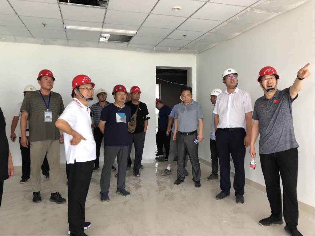在图文信息中心,院领导重点查看了七、八、九层施工进度。朱美荣嘱咐施工单位一定要在保证质量的前提下,加快施工进度,确保按期完成目标任务。